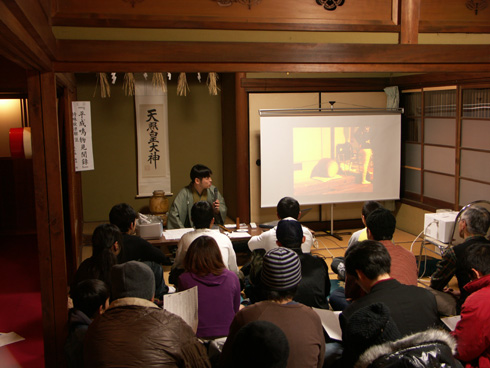 六五〇年大祭語るは岸城の神社の宮司さん。こんな機会はめったに無いぞ。